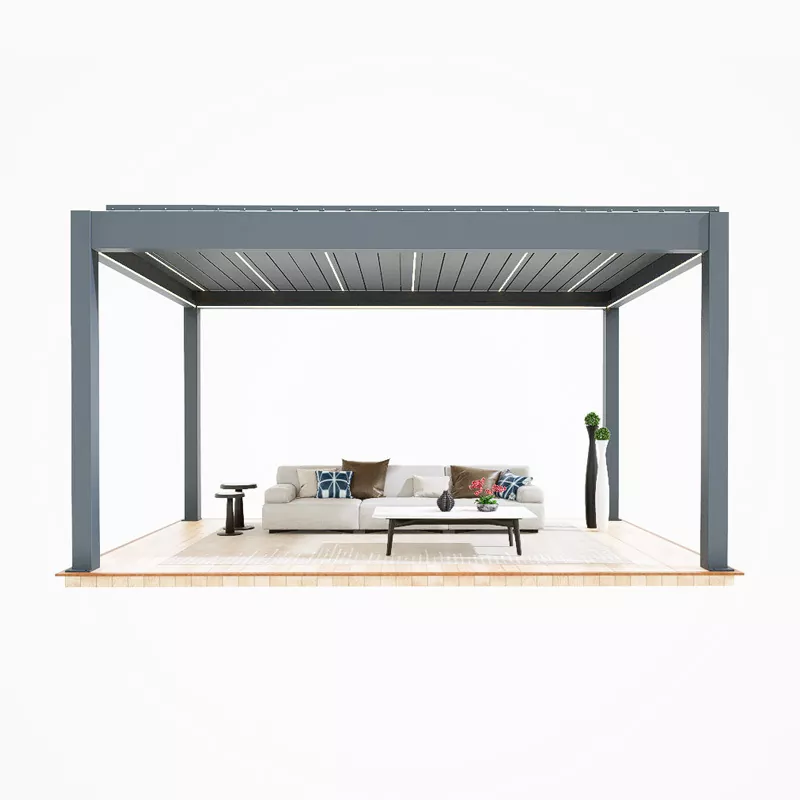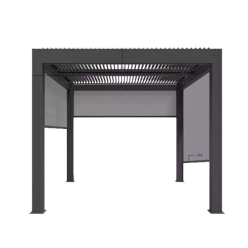 कोर्टयार्ड इंटेलिजेंट पवेलियन (3000×3000 मिमी): 60×60 मिमी कॉलम, टेम्पर्ड ग्लास छत + इंटेलिजेंट सनशेड, निजी आंगनों के लिए उपयुक्त;