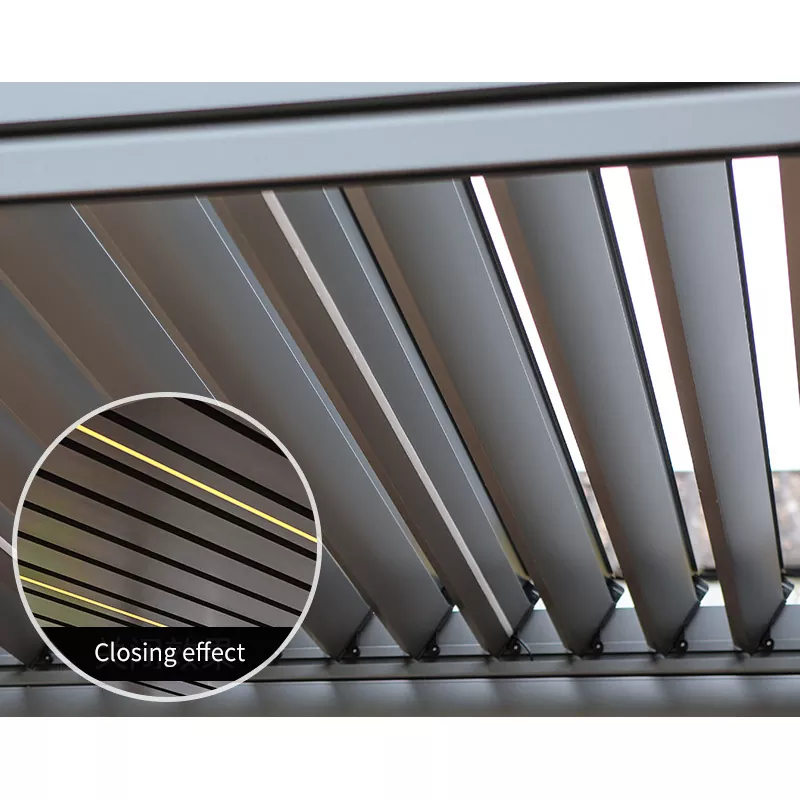 बुद्धिमान नियंत्रण मंडप का मुख्य लाभ "न्यूनतम सौंदर्यशास्त्र + बुद्धिमान कोर" में निहित है। सुव्यवस्थित लाइन डिजाइन के आधार पर, यह बुद्धिमान सनशेड, प्रकाश व्यवस्था, और हवा और बारिश प्रेरण जैसे मॉड्यूल को अदृश्य रूप से एकीकृत करता है, पूर्ण-परिदृश्य स्वचालित नियंत्रण प्राप्त करते समय पारदर्शी और साफ न्यूनतम उपस्थिति को बरकरार रखता है। मुख्य बॉडी मैट फ्लोरोकार्बन कोटिंग के साथ हल्के एल्यूमीनियम मिश्र धातु प्रोफाइल से बनी है, जो मौसम प्रतिरोध, संक्षारण प्रतिरोध और बनावट को संतुलित करती है। बुद्धिमान घटक IP65 वॉटरप्रूफ डिज़ाइन को अपनाते हैं, जो जटिल बाहरी वातावरण के अनुकूल होते हैं। इसे एपीपी के माध्यम से दूर से नियंत्रित किया जा सकता है और वॉयस कमांड द्वारा संचालित किया जा सकता है, जो सनशेड के स्वचालित उद्घाटन और समापन, क्रमिक प्रकाश परिवर्तन और हवा और बारिश के जवाब में स्वचालित समापन, सुविधा और तकनीकी समझ को संतुलित करने जैसे कार्यों को साकार करता है।